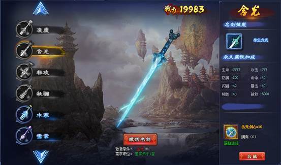 名剑系统是秦时明月特有系统之一。玩家通过激活名剑可以获得大量的战力加成,包括生命、攻击、防御、暴击多重属性!显然这是一个战力提升的重要部分。